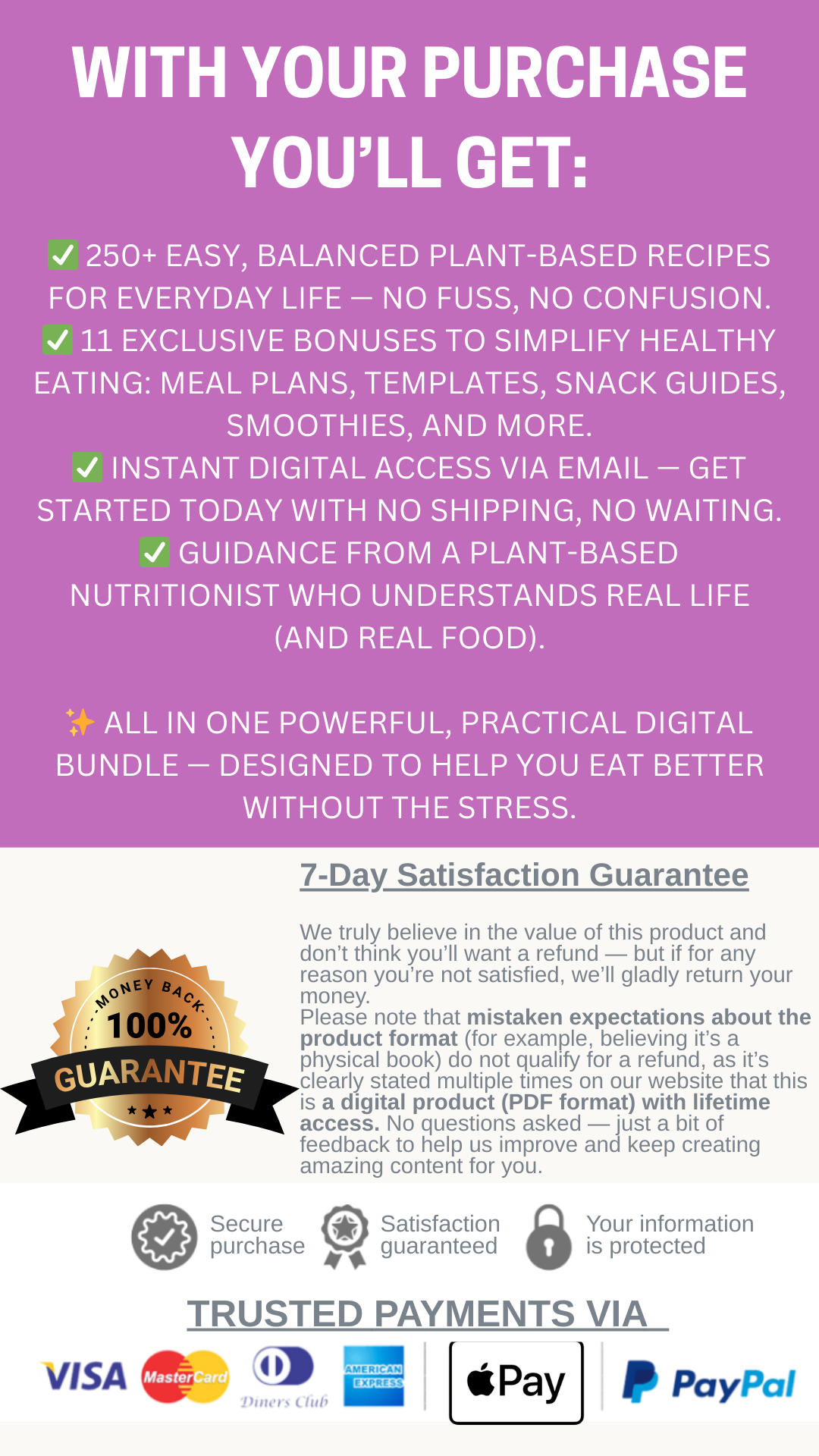 Plant-Based for Real Life – 250+ Easy Everyday Recipes 🌱 + 11 BONUSES Gifts Included 🌿